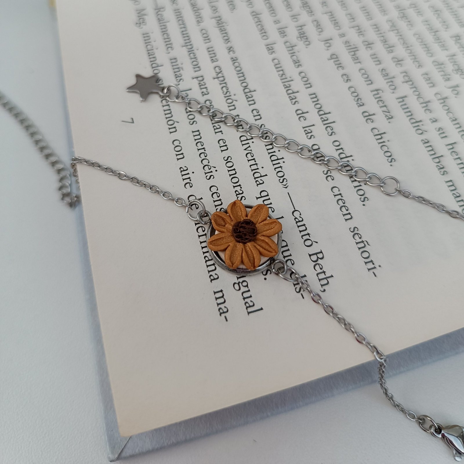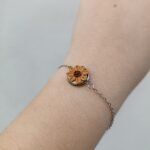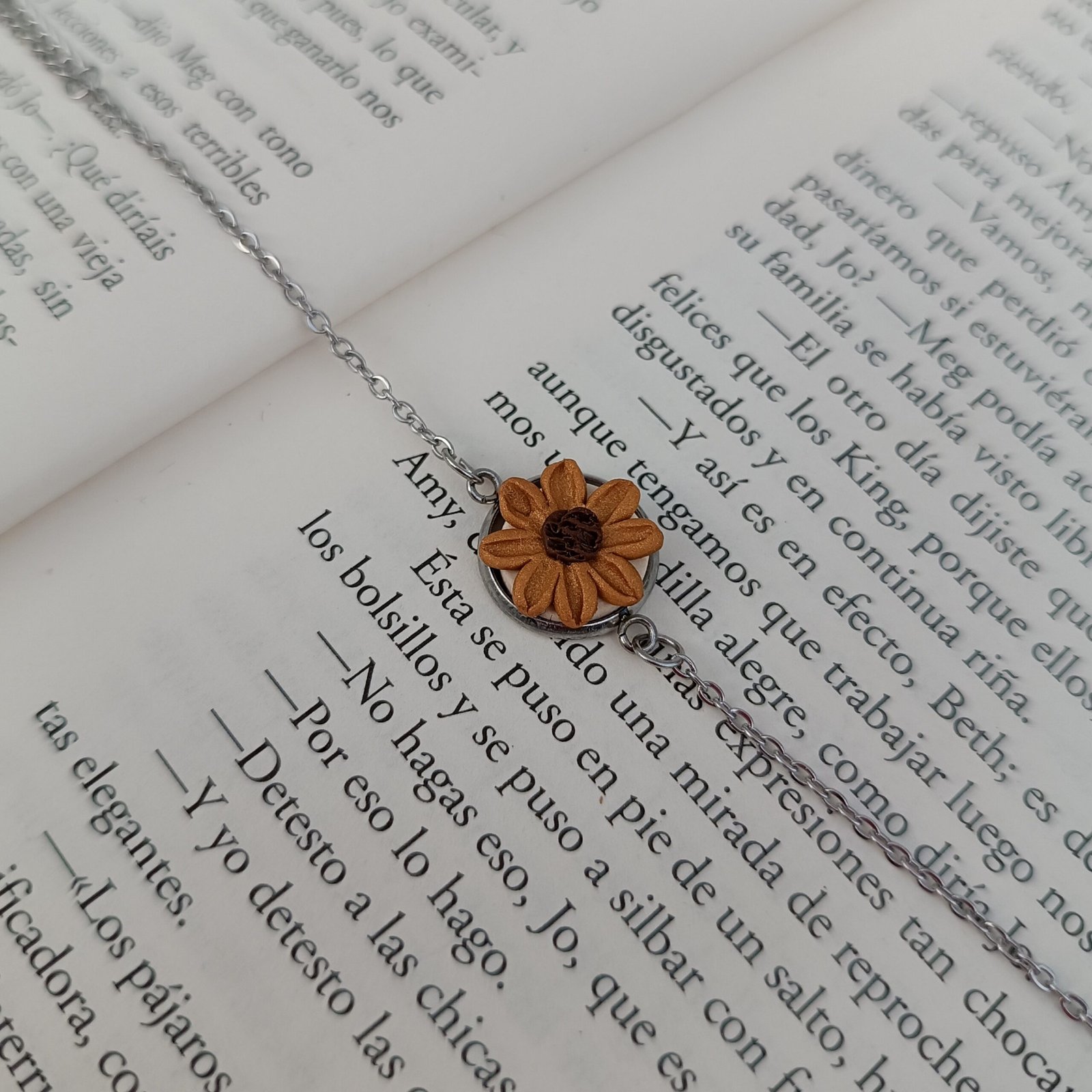 Esta pulsera de girasol, modelada a mano pétalo por pétalo, irradia energía cálida y estilo atemporal.