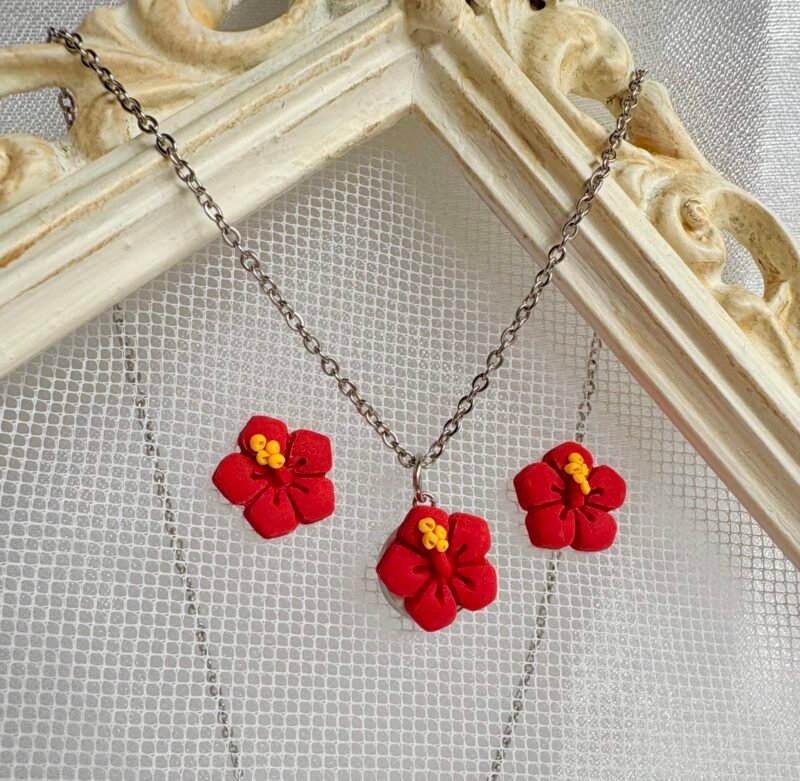 Accesorio inspirado en el hibisco rojo, delicado y lleno de vida. Diseñados para acompañarte todos los días, aportan un toque de color y frescura que realza cualquier look de forma sutil y femenina.