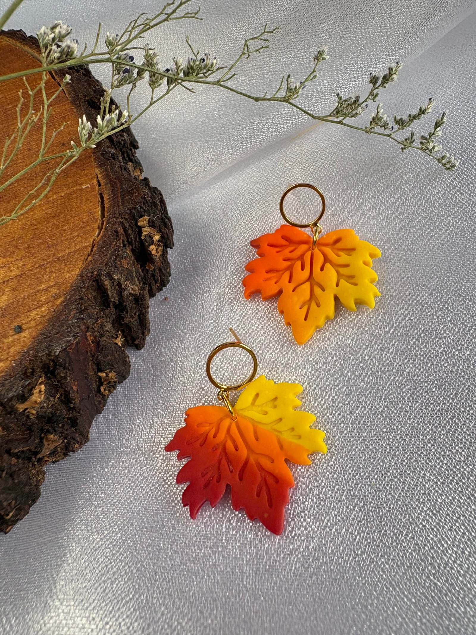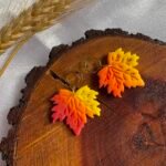 Hojas de arce en tonos cálidos con efecto degradé, modeladas a mano en arcilla polimérica y realzadas con detalles sutiles que aportan profundidad.