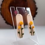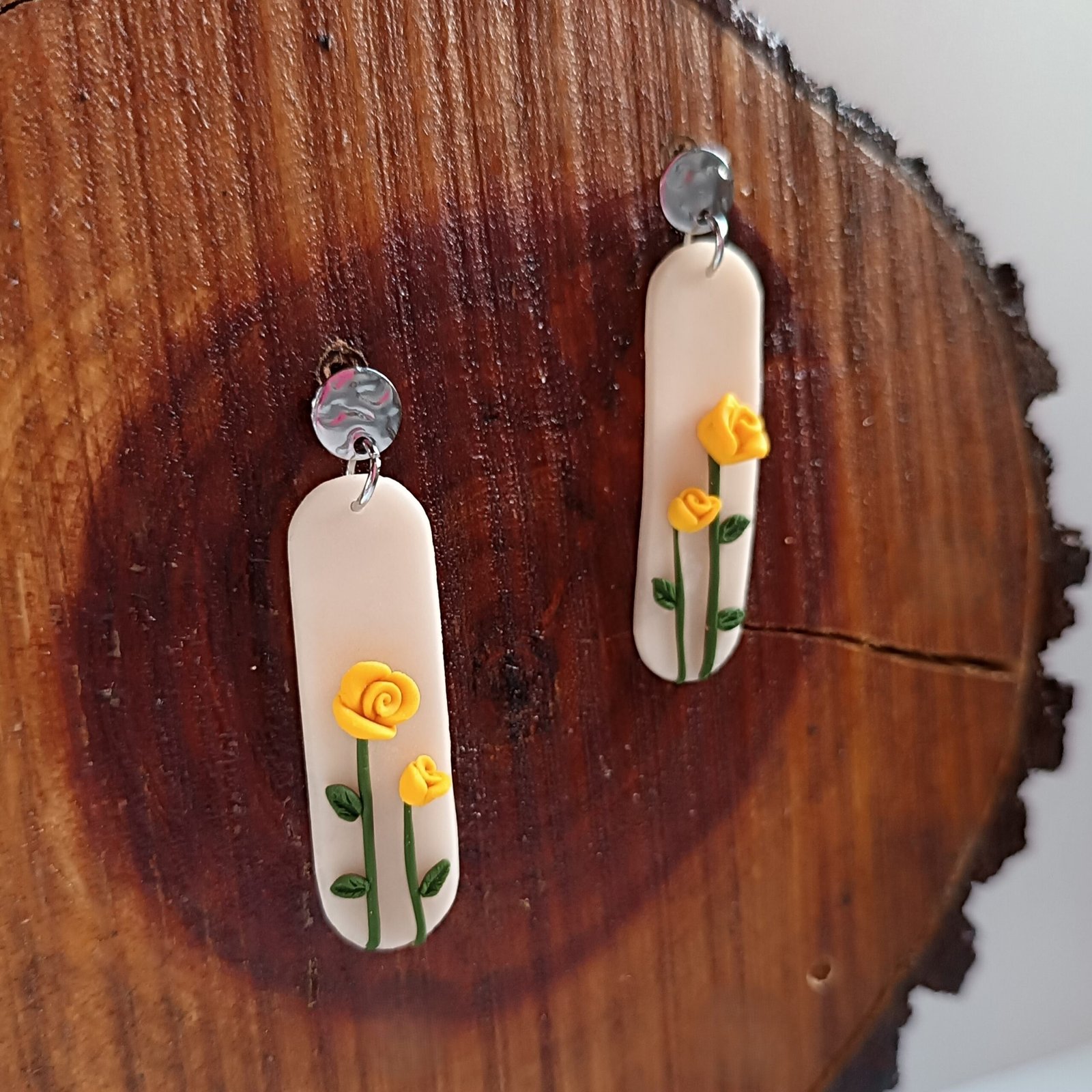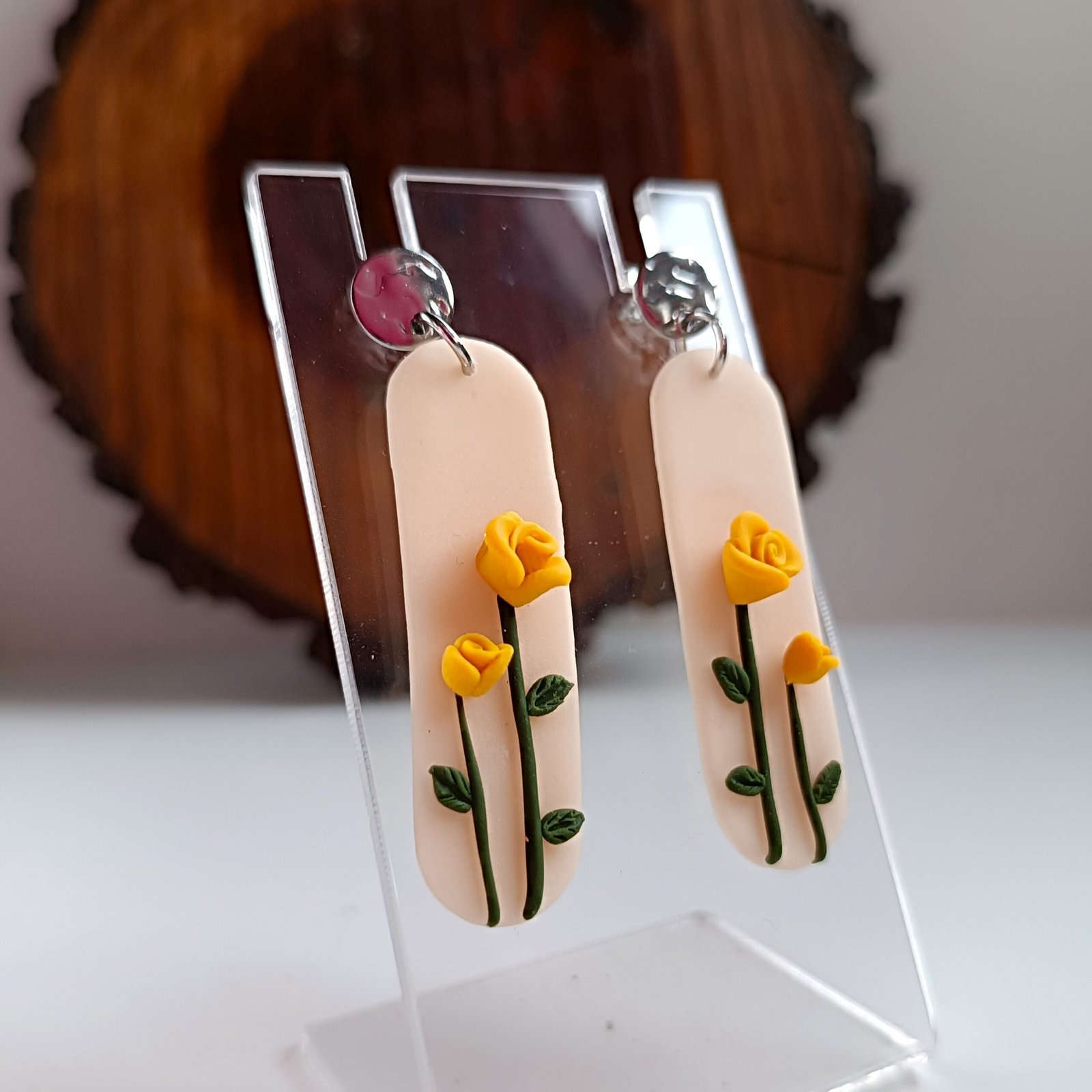 Delicadas caravanas de arcilla polimérica que encierran la suavidad de una rosa en su máximo detalle. Su diseño alargado y pétalos minuciosamente modelados capturan la luz con elegancia, evocando la frescura de un amanecer. Un accesorio pensado para realzar la feminidad y el encanto natural.